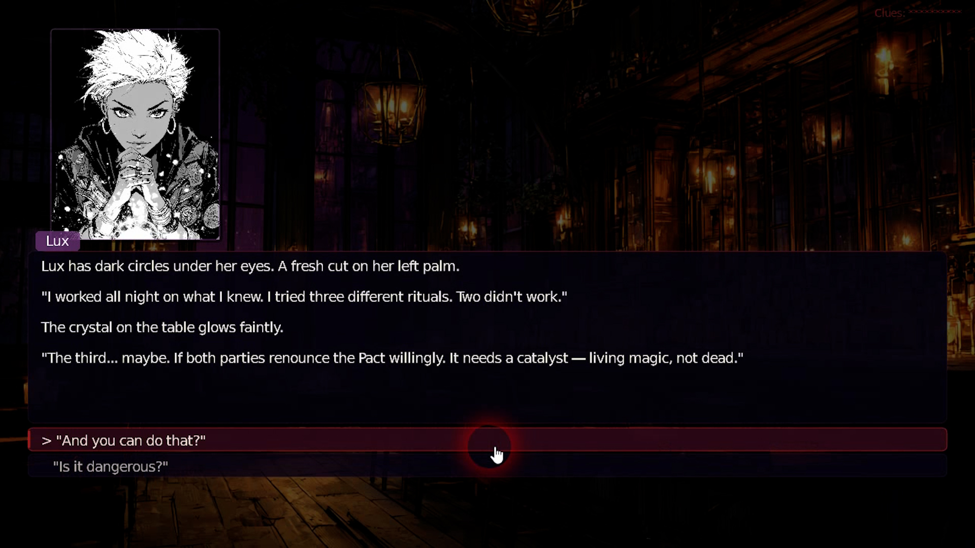 Everything — the dialogue system, the clue tracker, the typewriter effect, the branching logic, the save system — was written from zero.