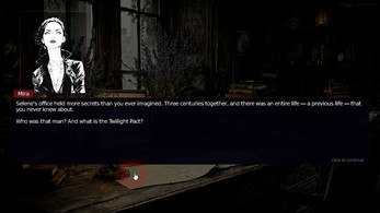 | Selene | Vampire. Mira's partner. Poetic, mysterious, gentle. She's missing. |