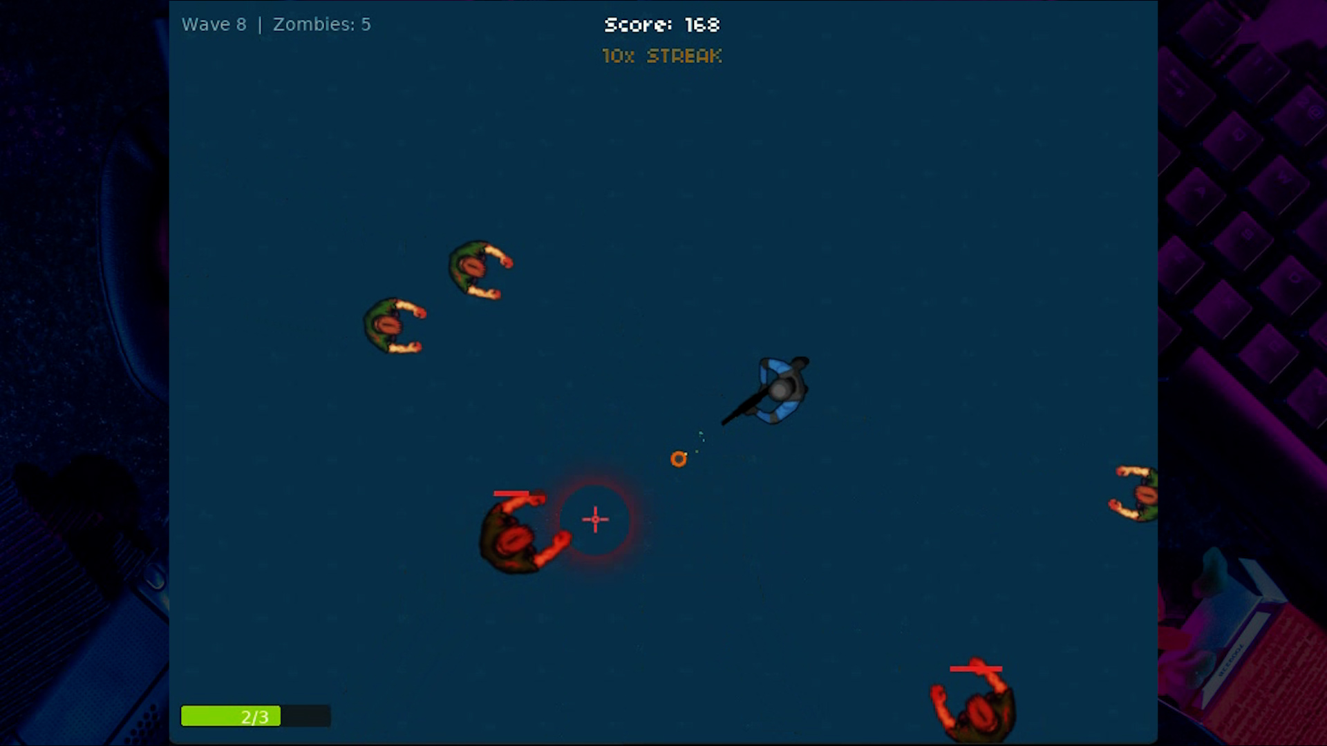 Top-down zombie survival shooter where you fight endless waves of the undead. How long can you survive?
